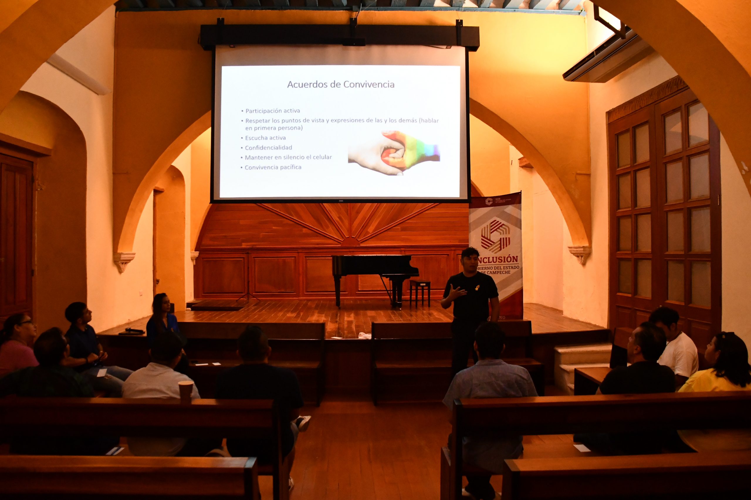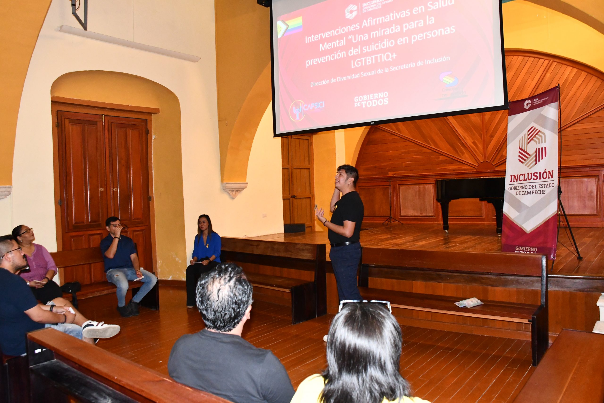 En el marco del Día Mundial para la Prevención del Suicidio, la Secretaría de Inclusión, encabezada por la Lic. Ana Alicia Mex Soberanis, llevó a cabo el taller “Intervenciones Afirmativas en Salud Mental: una mirada para la prevención del suicidio en poblaciones LGBTTTIQ+”, con el propósito de brindar herramientas conceptuales y prácticas que fortalezcan la salud mental desde un enfoque incluyente y basado en derechos humanos. El evento tuvo lugar en el Auditorio Hernán Loría del Centro Cultural “El Claustro”, ubicado en el Centro Histórico de la ciudad de Campeche, y contó con la participación de integrantes de las poblaciones LGBTTTIQ+ y personas acompañantes, en un espacio seguro y libre de discriminación. Durante el taller, especialistas en psicología afirmativa compartieron estrategias para reconocer factores de riesgo y de protección, fomentando la empatía, la prevención y el cuidado colectivo como elementos fundamentales para disminuir la vulnerabilidad de las poblaciones diversas frente al suicidio. La jornada se desarrolló con la colaboración del Colectivo ConSentido y el Centro de Atención Psicológica y de Servicios Integrales para la Comunidad (CAPSICI), reafirmando la importancia de la sinergia social y comunitaria para garantizar el derecho a la salud mental. Con estas acciones, la Secretaría de Inclusión da continuidad a la visión de la gobernadora Layda Sansores de construir un Campeche incluyente, en el que la dignidad, la salud y el bienestar de todas las personas sean pilares fundamentales de las políticas públicas.