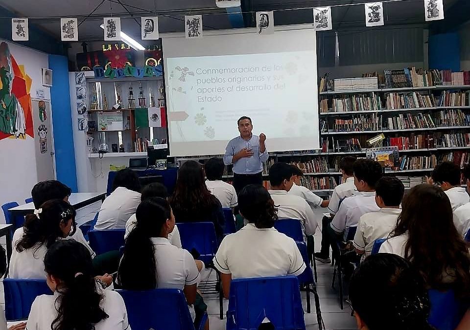 La Secretaría de Inclusión, a través de la Dirección de Pueblos Originarios, Pueblos Indígenas y Afromexicanos, impartió una charla a la comunidad estudiantil del Colegio XAIL, en el marco de la conmemoración de los pueblos originarios. La actividad estuvo encabezada por el director general de la SEIN, Lic. Gaspar Alberto Cauich Ramírez, quien compartió con las y los estudiantes la importancia de promover el uso de las lenguas originarias y reconocer las contribuciones históricas y contemporáneas de los pueblos indígenas al desarrollo del Estado de Campeche. Durante su intervención, el Mtro. Cauich, subrayó que preservar las lenguas y tradiciones es una herramienta para fortalecer la identidad cultural y reafirmar la diversidad como un valor esencial de la sociedad campechana. La titular de la Secretaría de Inclusión, Lic. Ana Alicia Mex Soberanis, destacó que estas acciones buscan visibilizar y valorar las raíces de Campeche, alineadas con el compromiso de la gobernadora Layda Sansores de construir un Estado en el que la inclusión y la diversidad sean pilares de desarrollo. Con este tipo de espacios, la Secretaría de Inclusión reafirma su compromiso de generar aprendizajes significativos que fortalezcan el orgullo por nuestras raíces, abran caminos hacia la igualdad y celebren la riqueza de los pueblos originarios.