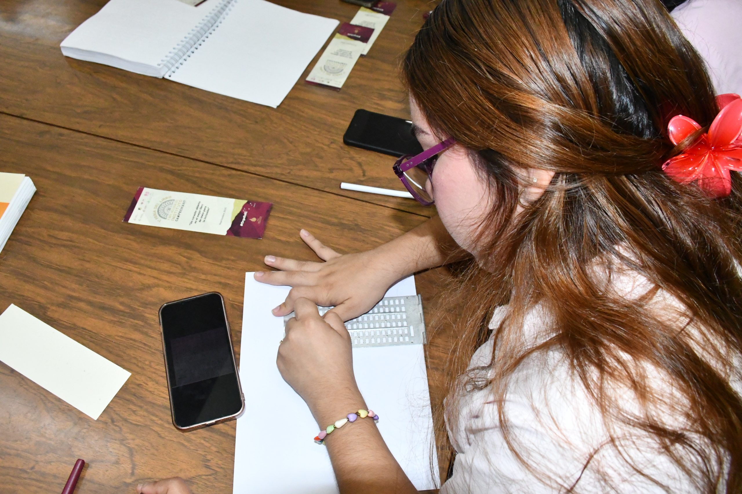 En el marco de la 1.ª Feria del Libro y Arte Inclusiva del Instituto Campechano, se llevó a cabo un productivo Taller de Lectura en Braille con Enfoque de Inclusión Social, con la finalidad de fortalecer la sensibilización hacia la discapacidad visual y promover el acceso universal a la cultura. La actividad fue coordinada por la Secretaría de Inclusión, a través de la Dirección para la Discapacidad a cargo del Lic. Jorge Hoil Lee, junto con el Lic. Diego Herrera Farfán, Director de Promoción y Vinculación de la SEIN. Durante la jornada, los estudiantes tuvieron la oportunidad de interactuar con el sistema Braille como herramienta de comunicación, explorando la lectura desde una perspectiva sensorial distinta. El ejercicio permitió generar empatía y fomentar el respeto hacia las personas con discapacidad visual, destacando la importancia de reconocer la diversidad como parte esencial de la vida cultural. En esta dinámica, se contó con la participación especial de Merary de Jesús Puch Magaña, joven con discapacidad visual, quien compartió la lectura de “Los tres mosqueteros”, enriqueciendo la experiencia del taller y subrayando que estos espacios acercan la literatura a toda la población, al mismo tiempo que fortalecen la participación activa de las personas con discapacidad en la vida cultural del estado. La titular de la Secretaría de Inclusión, Lic. Ana Alicia Mex Soberanis ha señalado que este tipo de actividades consolida el derecho al arte y la lectura en condiciones de igualdad, abriendo puertas a una cultura verdaderamente accesible. Estas acciones se enmarcan en el compromiso de la gobernadora Layda Sansores, quien impulsa políticas públicas para garantizar que la inclusión se viva en todos los espacios, reconociendo a la cultura como un puente de igualdad y transformación social. Con experiencias como este taller, Campeche avanza hacia la construcción de una sociedad más justa, accesible y solidaria, donde la diversidad se convierte en el motor de la inclusión.