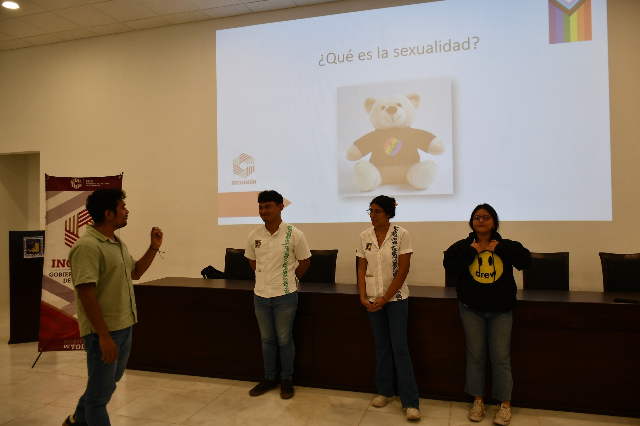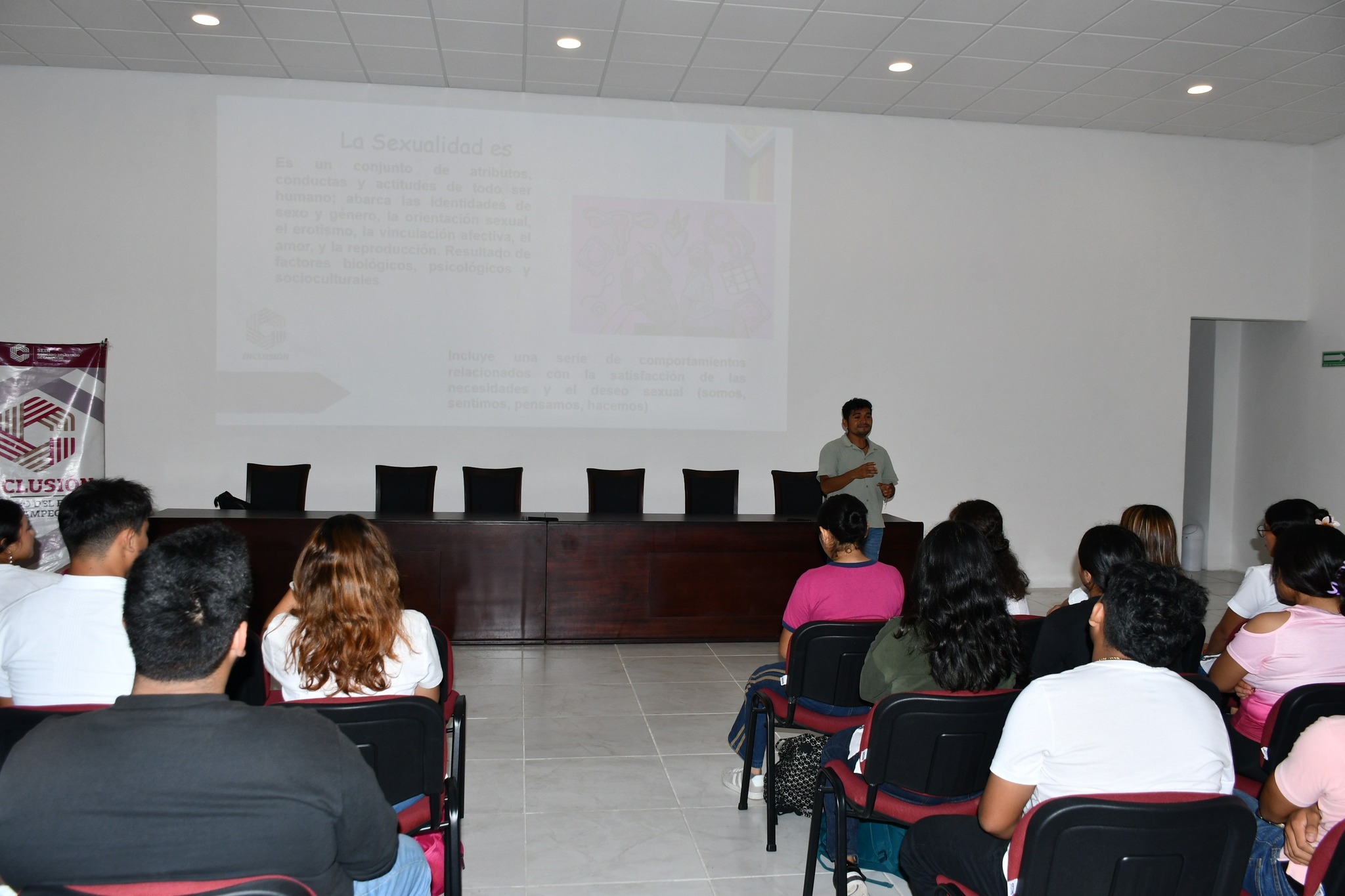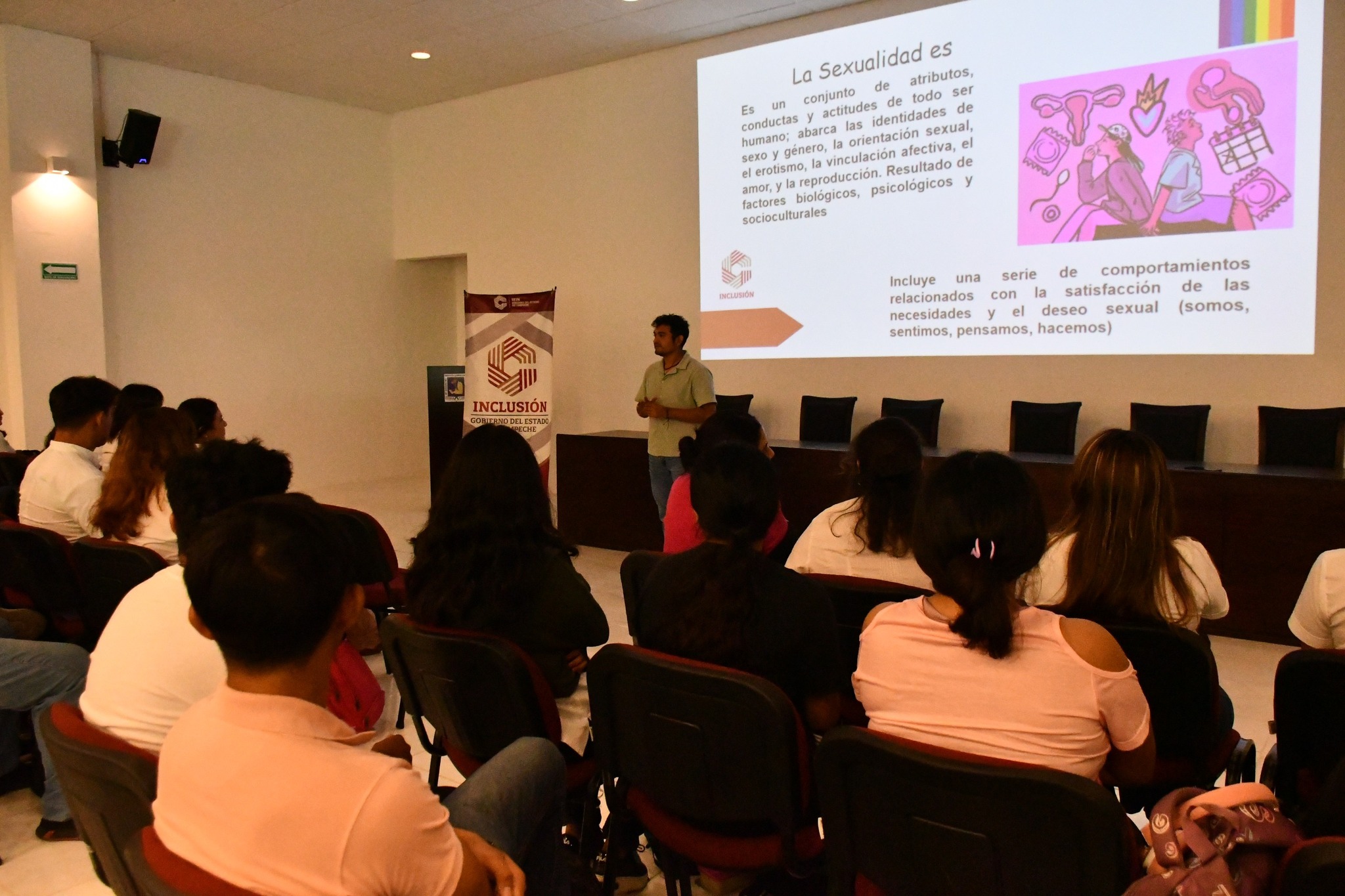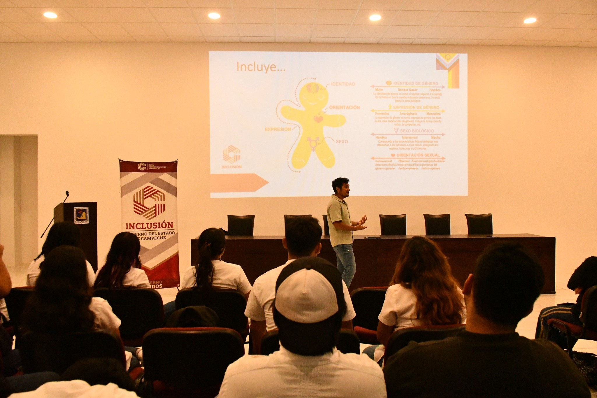 La Secretaría de Inclusión llevó a cabo la charla “El ABC de la Diversidad Sexual y la Inclusión”, dirigida a la comunidad estudiantil de la Escuela de Turismo del Instituto Campechano, con el propósito de promover la conciencia social, el respeto y la no discriminación hacia las diversidades sexogenéricas. El encuentro, realizado en la Sala Audiovisual del Campus de Turismo, estuvo a cargo del director del Área de Diversidad Sexual, Carlos Rodrigo Nick Castillo, quien abordó conceptos básicos sobre diversidad, identidad y orientación sexual, con el fin de generar espacios educativos más empáticos e incluyentes. Durante la charla, se reflexionó sobre la importancia de reconocer y respetar las diferencias como una forma de prevenir entornos de violencia escolar y discriminación, fomentando el diálogo y la convivencia basada en los valores de igualdad y justicia social. La titular de la Secretaría de Inclusión, Lic. Ana Alicia Mex Soberanis ha destacado que estas acciones forman parte de los esfuerzos permanentes por fortalecer la cultura de inclusión en todos los ámbitos, especialmente en los espacios educativos, donde se construyen las bases de una sociedad más justa y respetuosa. Con estas iniciativas, el Gobierno de Todos, encabezado por la gobernadora Layda Sansores San Román, reafirma su compromiso de impulsar políticas públicas que garanticen el respeto a la diversidad, la igualdad de oportunidades y la construcción de un Campeche libre de discriminación..