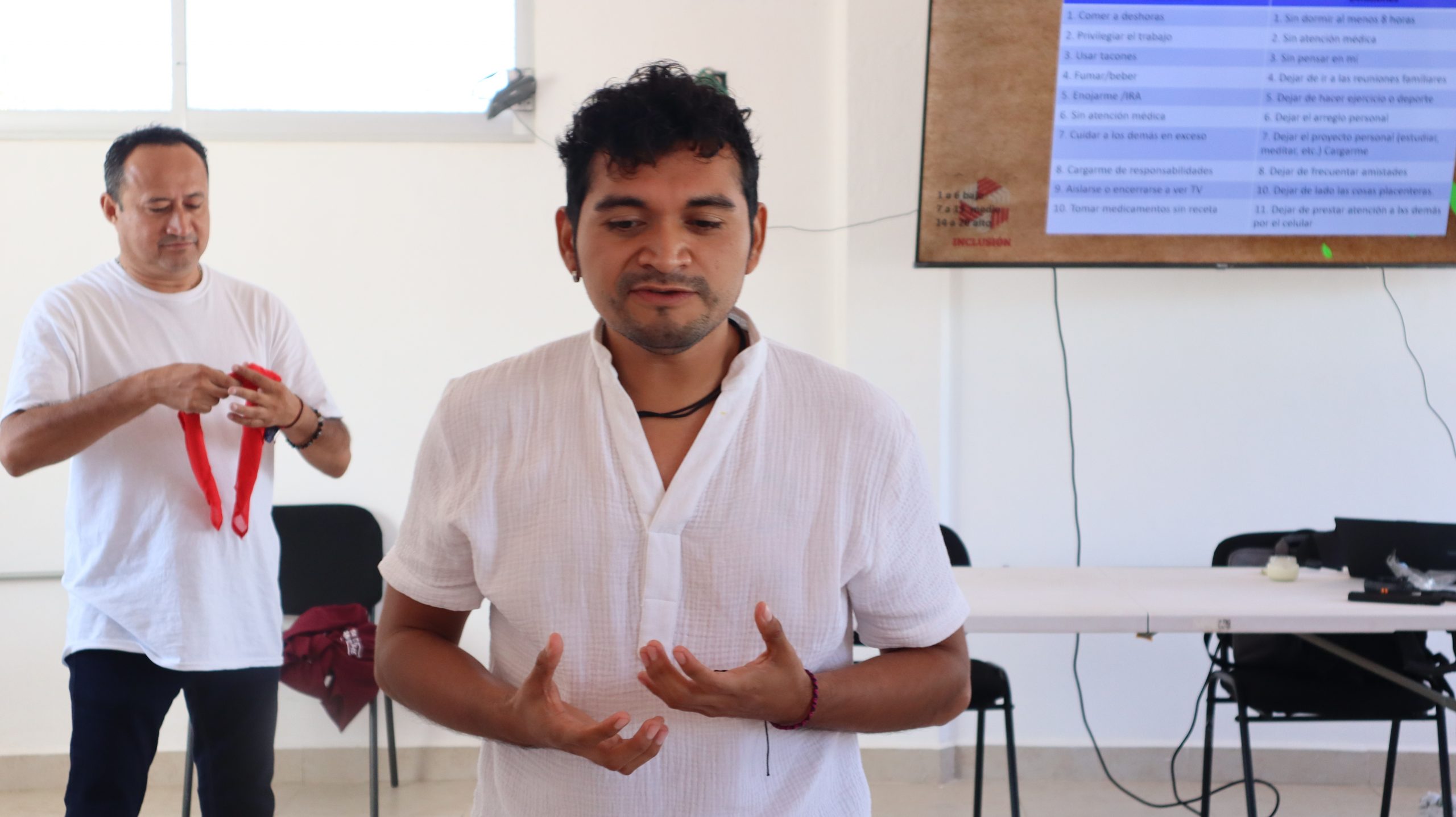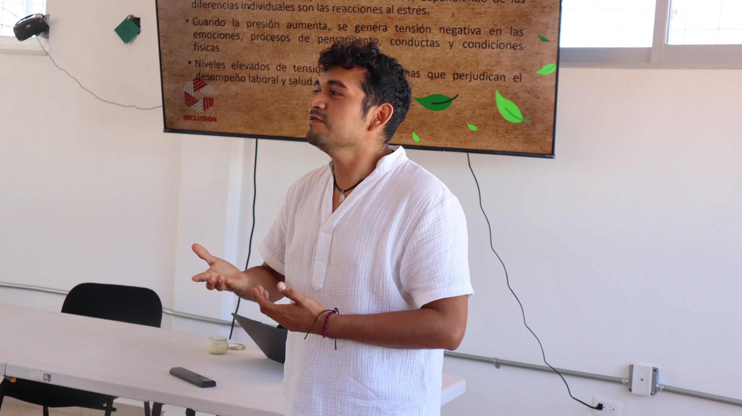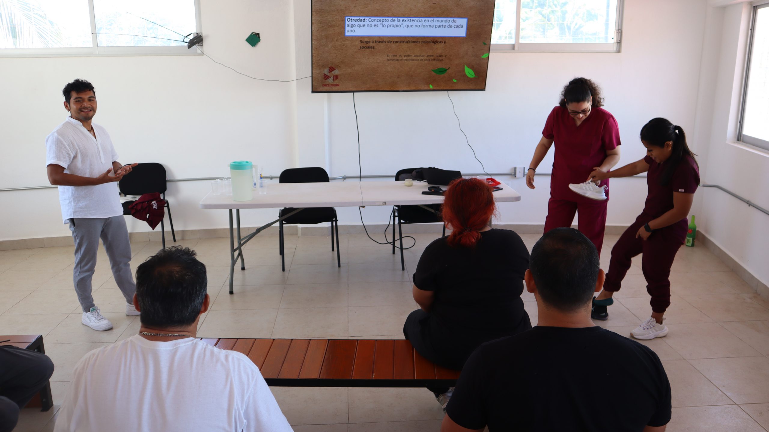 En el marco del Día Mundial de la Salud Mental, la Secretaría de Inclusión, a través de la Dirección de Diversidad Sexual, llevó a cabo el taller vivencial “Fortaleciendo el Cuidado desde Adentro” en el Albergue A Jo´olnaj, con la participación del personal operativo y administrativo del espacio. La actividad, que tuvo una duración de dos horas, estuvo enfocada en promover la inteligencia social y emocional, abordando herramientas de autocuidado y prevención del estrés ocupacional, con el propósito de fortalecer entornos laborales saludables y emocionalmente sostenibles. Durante la jornada, se destacó la importancia de atender la salud mental dentro de las instituciones públicas como un factor determinante para el bienestar personal y colectivo. La Lic. Ana Alicia Mex Soberanis, titular de la Secretaría de Inclusión, ha subrayado que el cuidado emocional del personal es fundamental para brindar servicios sensibles, humanos y empáticos hacia las poblaciones en situación de vulnerabilidad. El taller fue dirigido por el Psicólogo Carlos Rodrigo Nick Castillo, director del área de Diversidad Sexual de la SEIN, quien destacó la relevancia de la empatía, la comunicación asertiva y el manejo del estrés en los entornos laborales, especialmente en espacios de atención social como los que impulsa la Secretaría. Estas acciones se enmarcan en la visión de la gobernadora Layda Sansores San Román, quien impulsa políticas públicas centradas en el bienestar integral de las y los trabajadores del Estado, promoviendo que el servicio público se fortalezca desde la salud mental, la empatía y el respeto mutuo. Con este tipo de iniciativas, la Secretaría de Inclusión reafirma su compromiso con el desarrollo humano y la creación de espacios laborales donde el cuidado, la comprensión y la salud emocional sean pilares del trabajo diario al servicio de la sociedad campechana.