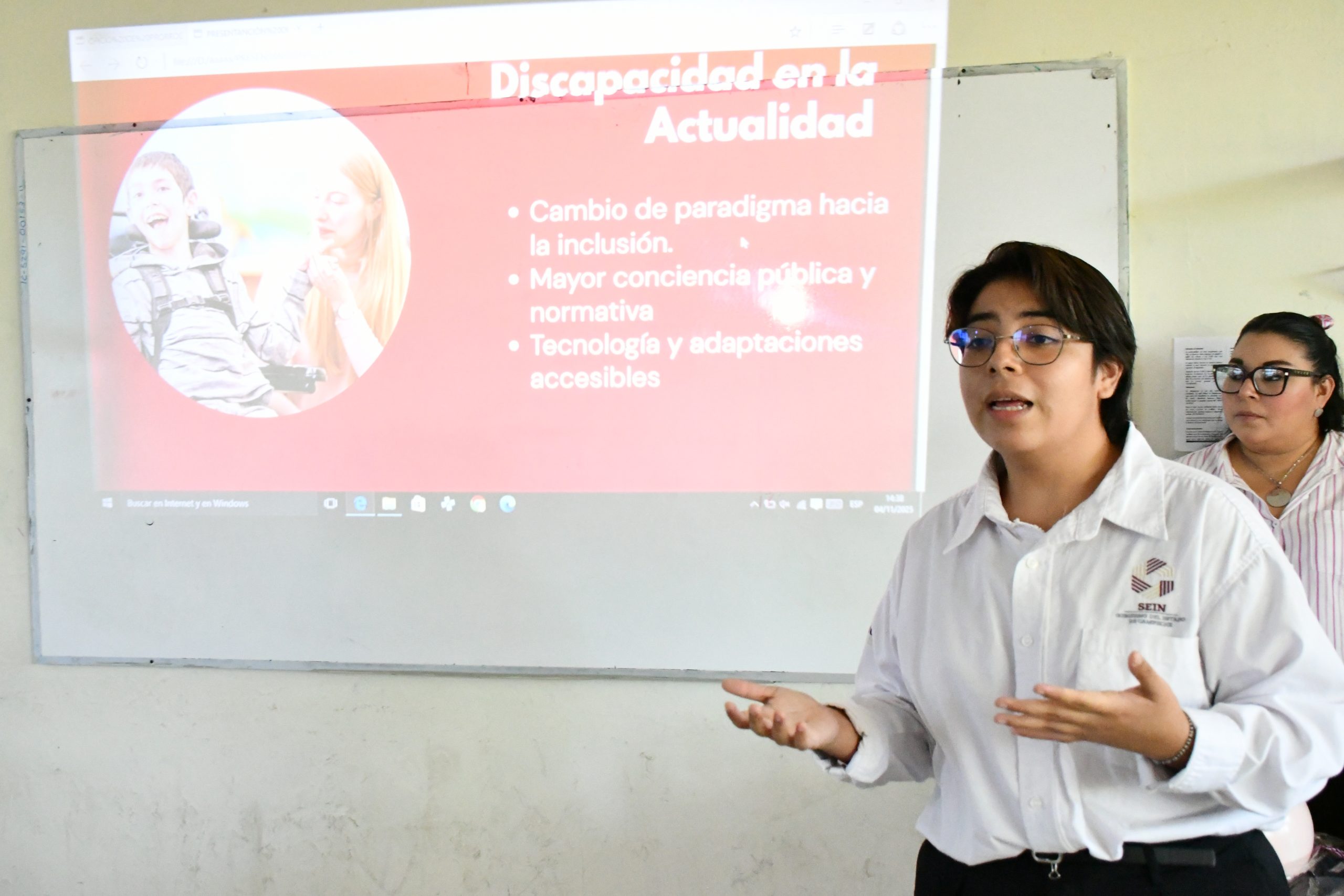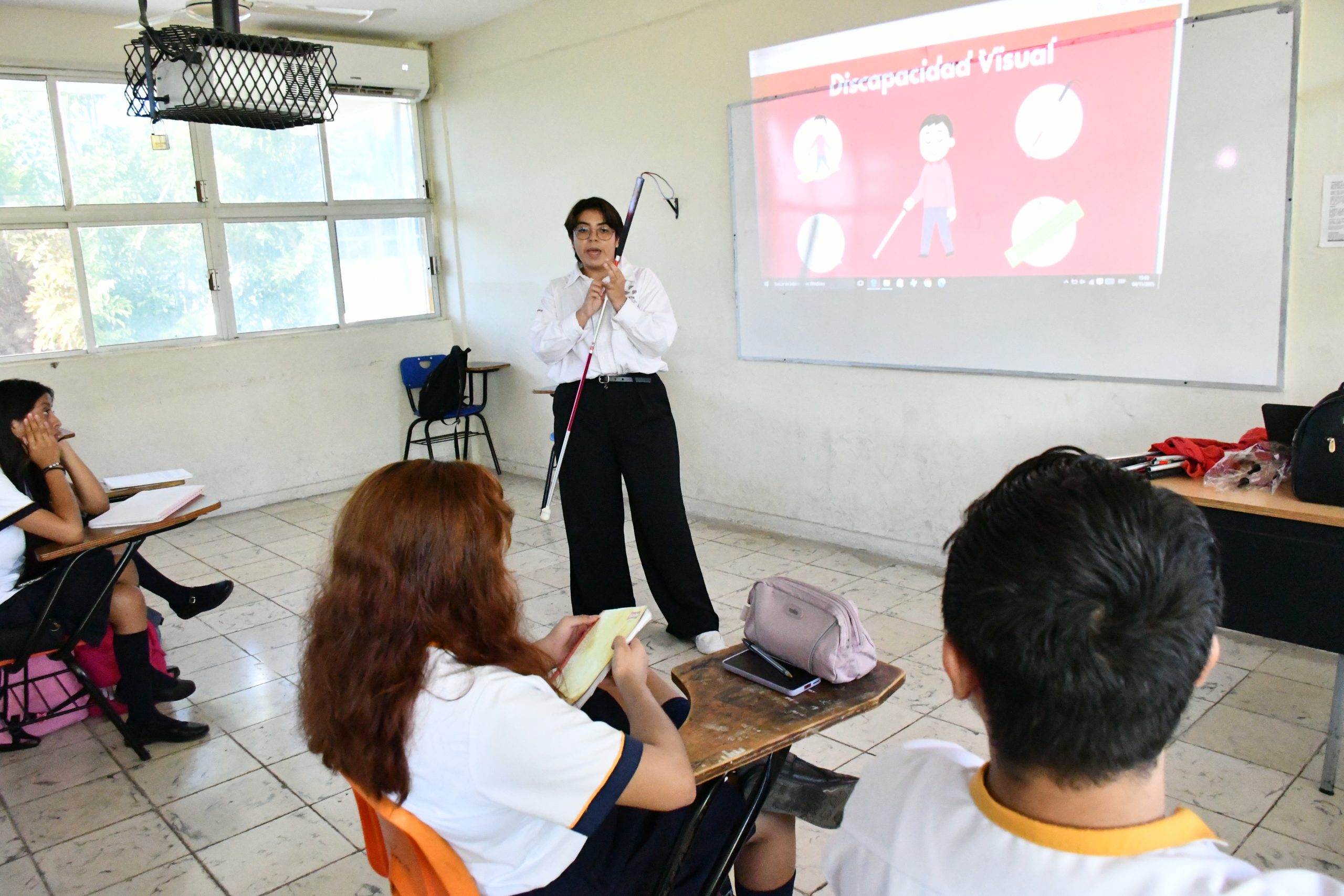 la Secretaría de Inclusión impartió la charla “Discapacidad: Un cambio de percepción” a las y los estudiantes de la Preparatoria del Instituto Campechano, a través de la Dirección para la Discapacidad. Durante esta actividad, realizada de manera presencial, se invitó a la comunidad estudiantil a reflexionar sobre las barreras físicas y sociales que enfrentan las personas con discapacidad, destacando la importancia de construir entornos accesibles e inclusivos que garanticen el pleno ejercicio de los derechos humanos Como parte de la jornada, se llevó a cabo una dinámica de sensibilización utilizando bastones para personas con discapacidad visual, donde las jóvenes experimentaron los desafíos cotidianos que viven quienes presentan esta condición, fortaleciendo así la comprensión y la empatía desde la vivencia. La titular de la Secretaría de Inclusión, la Licda. Ana Alicia Mex Soberanis ha subrayado que estas acciones forman parte del compromiso del Gobierno de Todos, encabezado por la gobernadora Layda Sansores San Román, de promover la inclusión social desde la educación, generando conciencia en las nuevas generaciones sobre la importancia del respeto, la igualdad y la solidaridad.