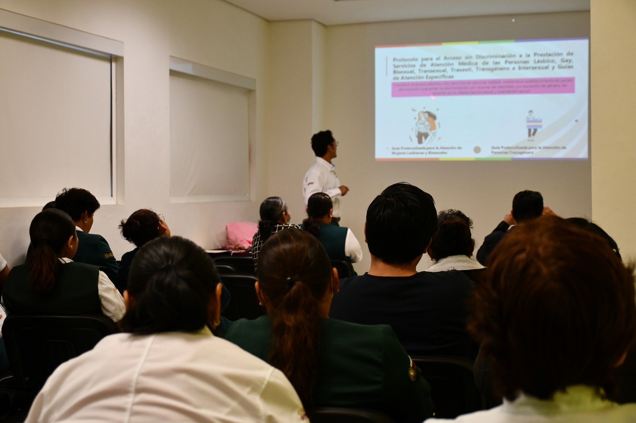 Con el propósito de fomentar una atención médica basada en el respeto, la empatía y la igualdad, la Secretaría de Inclusión impartió el tema “Cáncer cervicouterino: Perspectivas inclusivas para una atención libre de discriminación” al personal del Centro Estatal de Oncología, promoviendo la sensibilización del sector salud ante los retos que enfrentan mujeres lesbianas, bisexuales, hombres trans y personas queer en los servicios de atención médica. Durante la sesión, se presentó un decálogo de acciones afirmativas diseñado para fortalecer la atención con enfoque de derechos humanos, que impulse el acceso equitativo a la prevención, diagnóstico y tratamiento del cáncer cervicouterino, sin prejuicios ni exclusiones por identidad o expresión de género. Estas acciones forman parte de la estrategia que encabeza la Licda. Ana Alicia Mex Soberanis, titular de la Secretaría de Inclusión, quien ha reiterado la importancia de articular esfuerzos interinstitucionales que garanticen una atención digna y libre de discriminación en todos los servicios públicos. El Gobierno de Todos, que dirige la gobernadora Layda Sansores San Román, reafirma así su compromiso con la construcción de un Campeche más justo, igualitario e incluyente, donde el derecho a la salud se viva plenamente y con respeto a la diversidad.