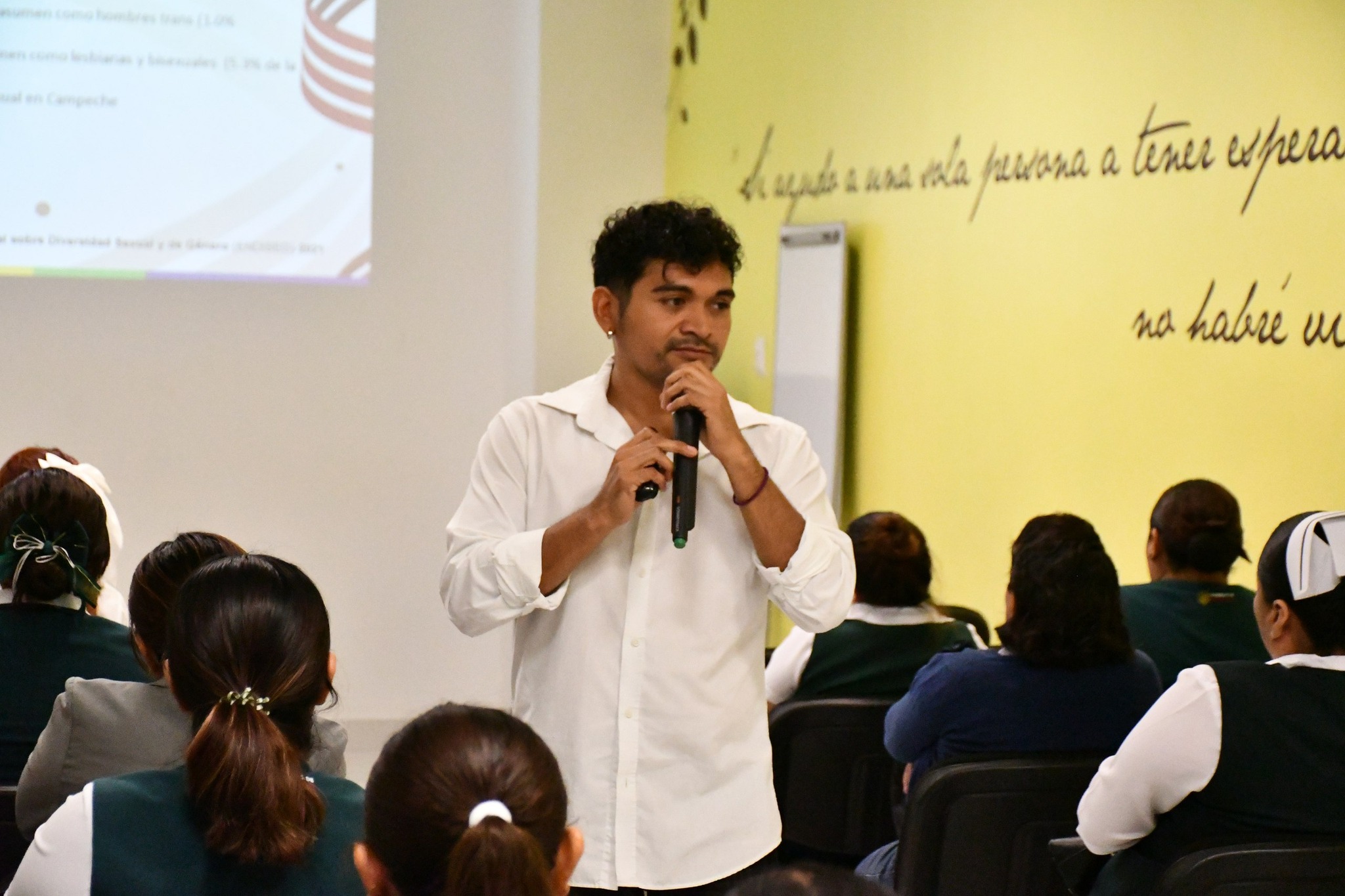 La Secretaría de Inclusión llevó a cabo el curso “Cáncer cervicouterino: “Perspectivas Incluyentes para una Atención Libre de Discriminación”, dirigido a personal médico y administrativo del IMSS Bienestar, ISSSTE y Secretaría de Salud, en las instalaciones del Centro Estatal de Oncología. La sesión estuvo encabezada por el psicólogo Carlos Rodrigo Nick Castillo, Director del Área de Diversidad Sexual de la SEIN, quien compartió herramientas del Decálogo de Atención a Personas Trans, con el fin de mejorar los procesos de prevención, diagnóstico y acompañamiento desde un enfoque de igualdad y respeto. Asimismo, se reconoció la colaboración del Programa de Cáncer de la Mujer y del equipo del Centro Estatal de Oncología, quienes se sumaron a esta formación orientada a garantizar servicios de salud más humanos, accesibles y libres de estigma. La titular de la Secretaría de Inclusión, la Licda. Ana Alicia Mex Soberanis destacó que estas acciones reafirman el compromiso institucional de promover prácticas que garanticen la dignidad y un trato igualitario para todas las personas, en concordancia con la política humanista impulsada por la gobernadora Layda Sansores.