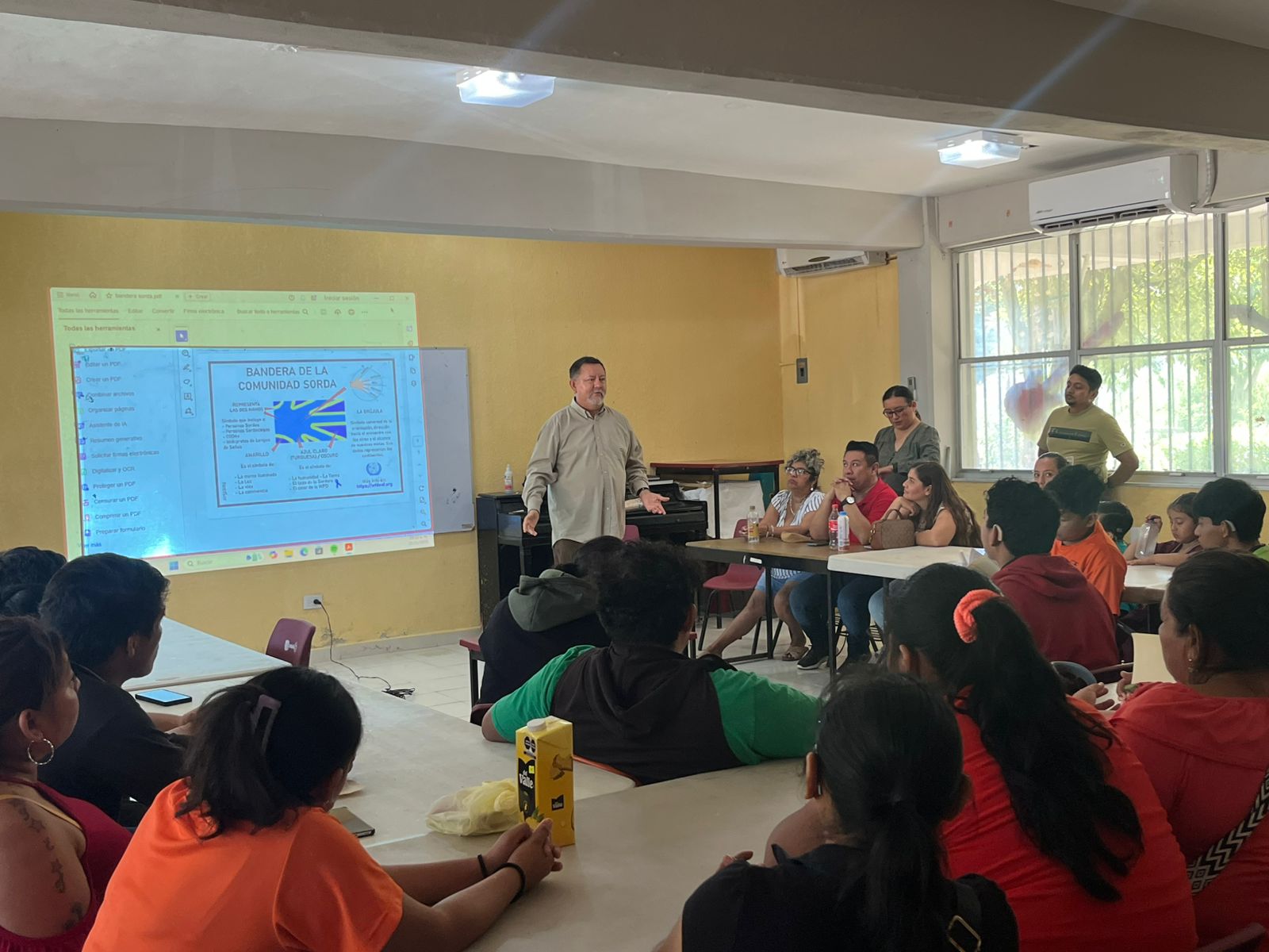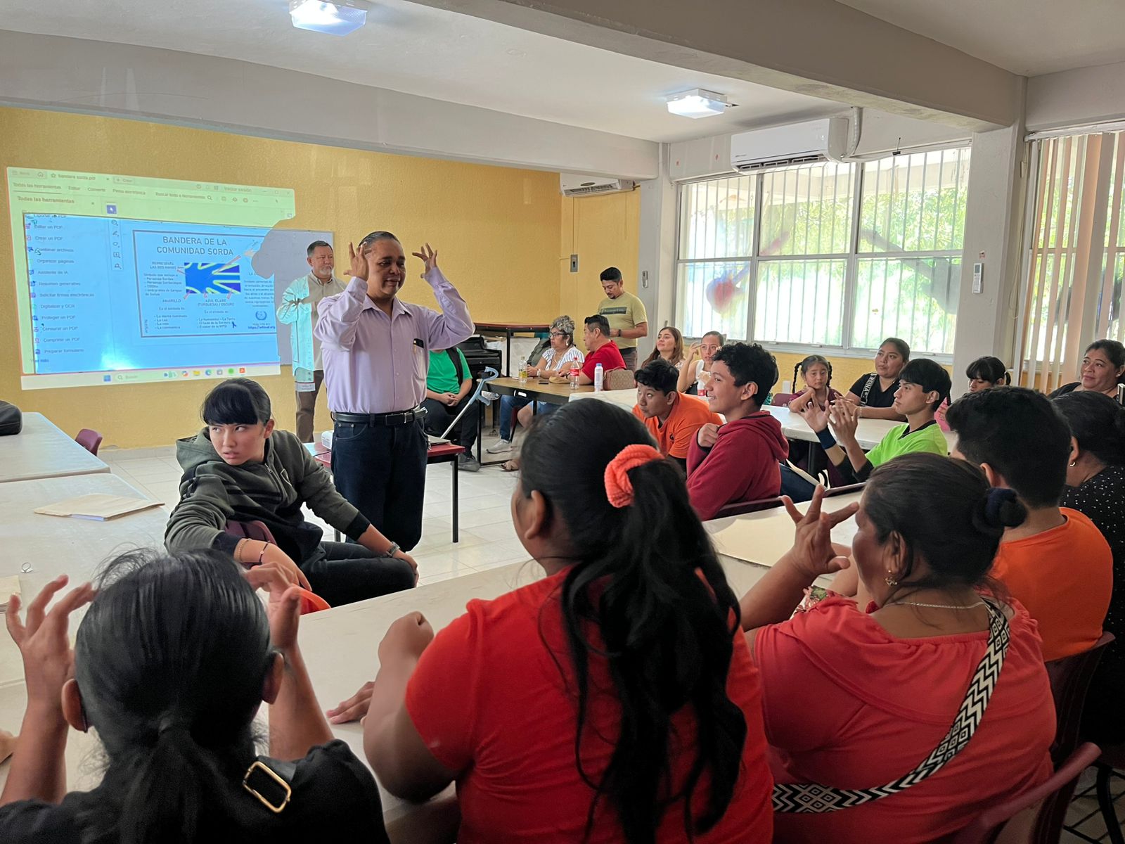 La Secretaría de Inclusión llevó a cabo la clausura del Curso de Lengua de Señas Mexicana (LSM) en el Centro de Atención Múltiple No. 02, donde durante un mes las infancias, madres y padres de familia, así como el personal docente, se comprometieron activamente con el aprendizaje de esta herramienta fundamental para la accesibilidad comunicativa. El curso fue impartido por el Mtro. José A. Escalante Alonzo, quien guió las sesiones teóricas y prácticas, sensibilizando a la comunidad educativa sobre la importancia de la LSM para garantizar el derecho a la comunicación de las personas sordas. Para cerrar este proceso, se realizó una convivencia donde se reconoció el esfuerzo, la dedicación y el entusiasmo de quienes integraron este ciclo formativo. La titular de la SEIN, la Licda. Ana Alicia Mex Soberanis subrayó que estas acciones fortalecen la inclusión desde las aulas, en concordancia con la visión de la gobernadora Layda Sansores, quien impulsa políticas que promueven igualdad,