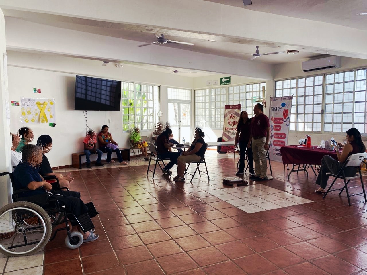 El Albergue A Jo´olnaj (Tu Techo) recibió al equipo del Programa de Enfermedades Cardiometabólicas de la Jurisdicción Sanitaria No. 1, quienes realizaron una jornada de detección oportuna dirigida a usuarias, usuarios, personal del albergue y habitantes de Kila, Lerma. Durante la visita se ofrecieron, de manera gratuita, servicios de medición de peso y talla, toma de glucosa en sangre, presión arterial, circunferencia de cintura y orientación nutricional, fortaleciendo la prevención como herramienta fundamental para el bienestar integral. La acción fue impulsada por la Secretaría de Salud, bajo la dirección de la Mtra. Josefa Castillo Avendaño, y forma parte de los esfuerzos coordinados con la Secretaría de Inclusión para garantizar el derecho a la salud de quienes enfrentan condiciones de vulnerabilidad. La titular de la SEIN, la Licda. Ana Alicia Mex Soberanis subrayó que estas jornadas responden a la visión de gobierno de Layda Sansores, enfocada en llevar la salud a los territorios donde más se necesita, con cercanía y trato humano.