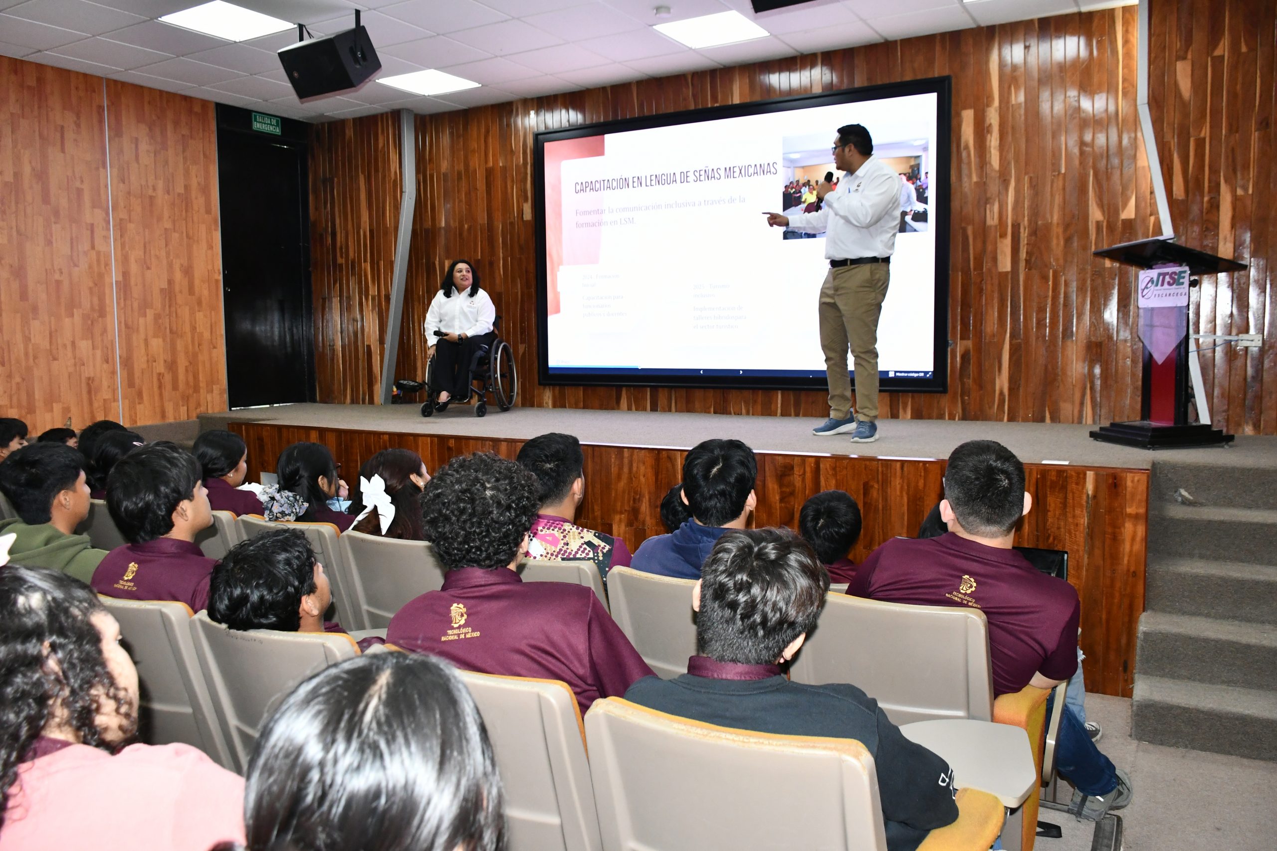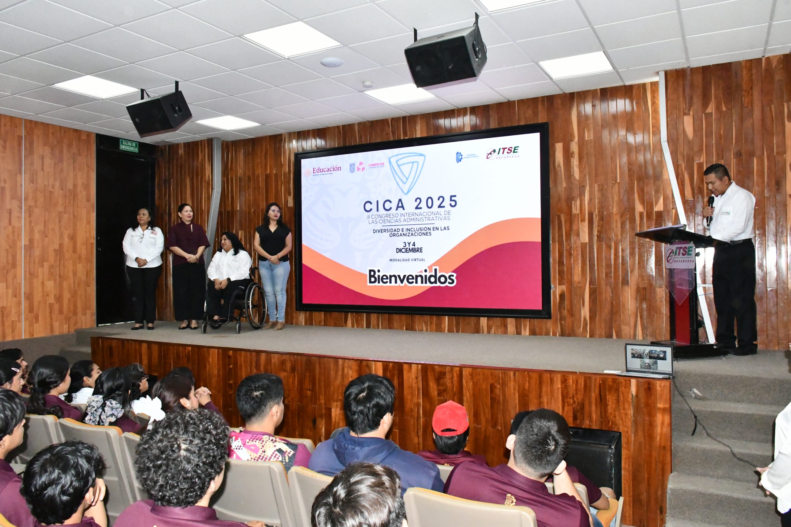 La Secretaría de Inclusión participó en el Congreso Internacional de las Ciencias Administrativas con la conferencia “Políticas Públicas para el Impulso a la Inclusión Laboral en el Sector Público y Privado”, impartida por el Psic. Jorge Francisco Hoil Lee de la Dirección para la Discapacidad de la SEIN y la Arq. Karla Geslisle Sánchez, titular de Vinculación con Obras Federales de la Oficina de la Gobernadora. Durante la sesión se expusieron los principales avances impulsados por la SEIN en materia de accesibilidad universal, adecuaciones razonables y programas de empleo incluyente, así como los retos pendientes para garantizar entornos laborales dignos y libres de barreras. La titular de la Secretaría de Inclusión, la Licda. Ana Alicia Mex Soberanis, y el Director General del Tecnológico de Escárcega, Dr. Dany Alejandro Dzib Cauich, inauguraron el congreso y resaltaron la importancia de articular esfuerzos entre academia, gobierno y sociedad para consolidar oportunidades laborales para personas con discapacidad. La SEIN refrenda su compromiso de trabajar desde el territorio y la coordinación institucional, con la visión de la gobernadora Layda Sansores, para transformar los avances en políticas públicas efectivas que promuevan la inclusión laboral en todo el estado.
