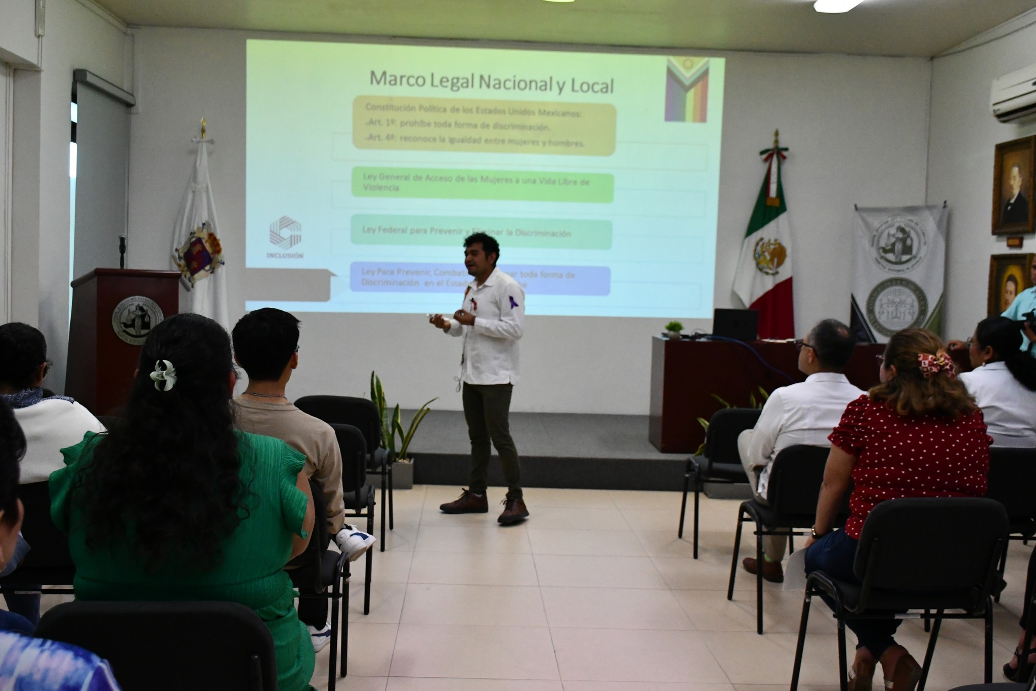 La Secretaría de Inclusión, a través del Área de Diversidad Sexual, impartió la conferencia “ABC de la Diversidad Sexual” en el Aula Multimodal “Presidentes”, dirigida a personal del Tribunal Superior de Justicia. La ponencia, encabezada por el Psicólogo Carlos Rodrigo Nick Castillo, abordó conceptos fundamentales para la comprensión de la orientación sexual, la identidad de género y la necesidad de aplicar una perspectiva de derechos en la actuación judicial. El objetivo fue brindar herramientas conceptuales que contribuyan a prevenir discriminación y favorecer decisiones judiciales informadas, respetuosas e incluyentes. La titular la Licda. Ana Alicia Mex Soberanis, destacó la importancia de estas alianzas institucionales para garantizar justicia con dignidad, en línea con el compromiso de la gobernadora Layda Sansores.