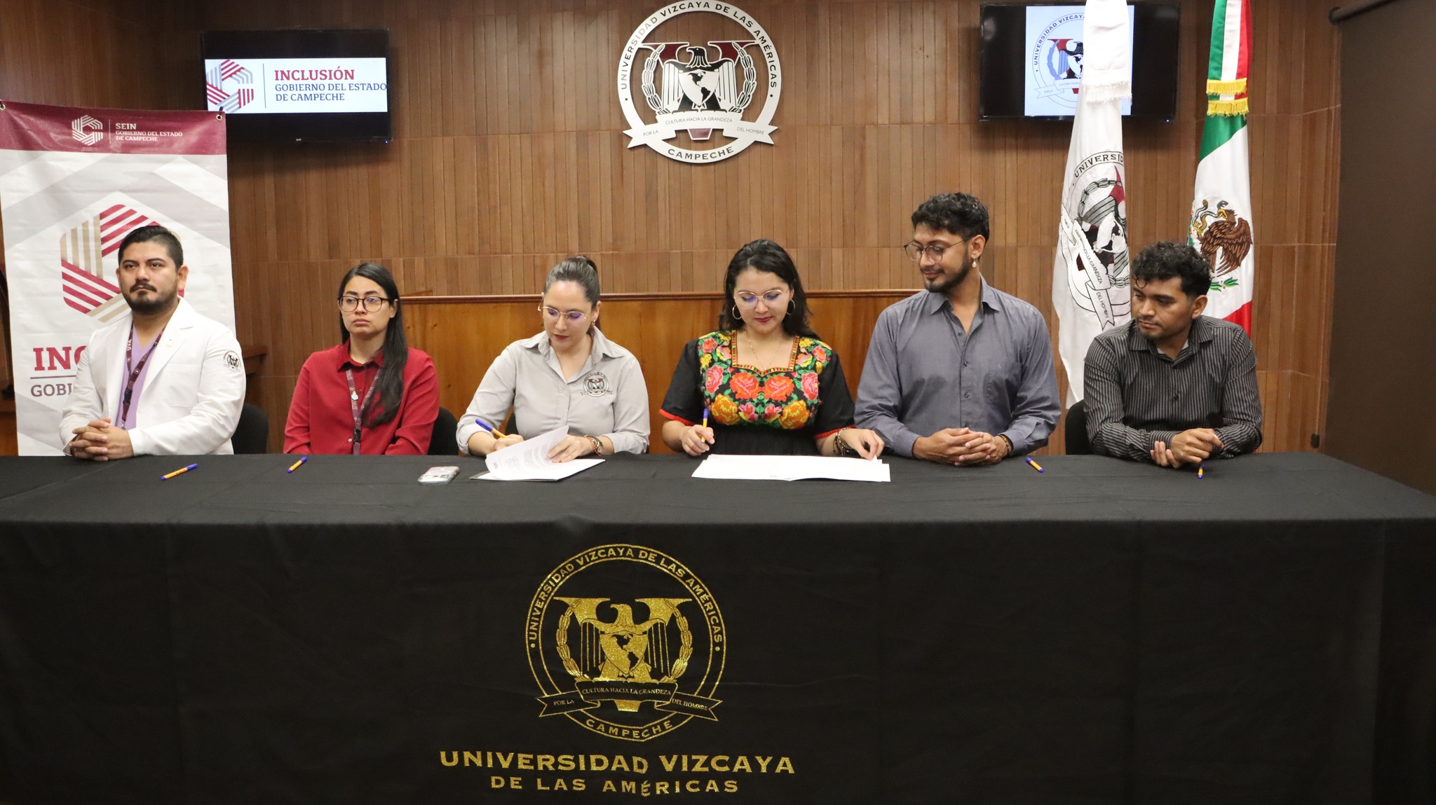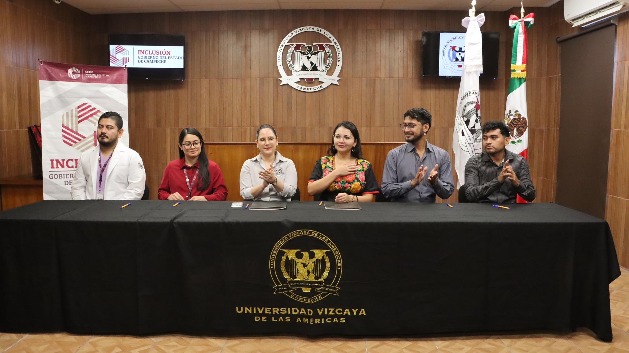 La Secretaría de Inclusión formalizó acuerdos de colaboración con la Universidad Vizcaya Campeche, con el objetivo de fortalecer la formación académica y la atención a grupos de población en situación de vulnerabilidad. A través de este convenio, la comunidad estudiantil podrá integrarse a las labores cotidianas de la dependencia, realizando prácticas profesionales y servicio social, poniendo en práctica sus conocimientos en beneficio directo de la ciudadanía. Esta vinculación permitirá ampliar los servicios institucionales, al tiempo que fomenta una formación profesional con sentido social y enfoque de derechos humanos. La titular de la SEIN, la Licda. Ana Alicia Mex Soberanis, destacó que estas alianzas se alinean con el proyecto de gobierno que encabeza la gobernadora Layda Sansores, enfocado en construir un Campeche más humano, incluyente y solidario.