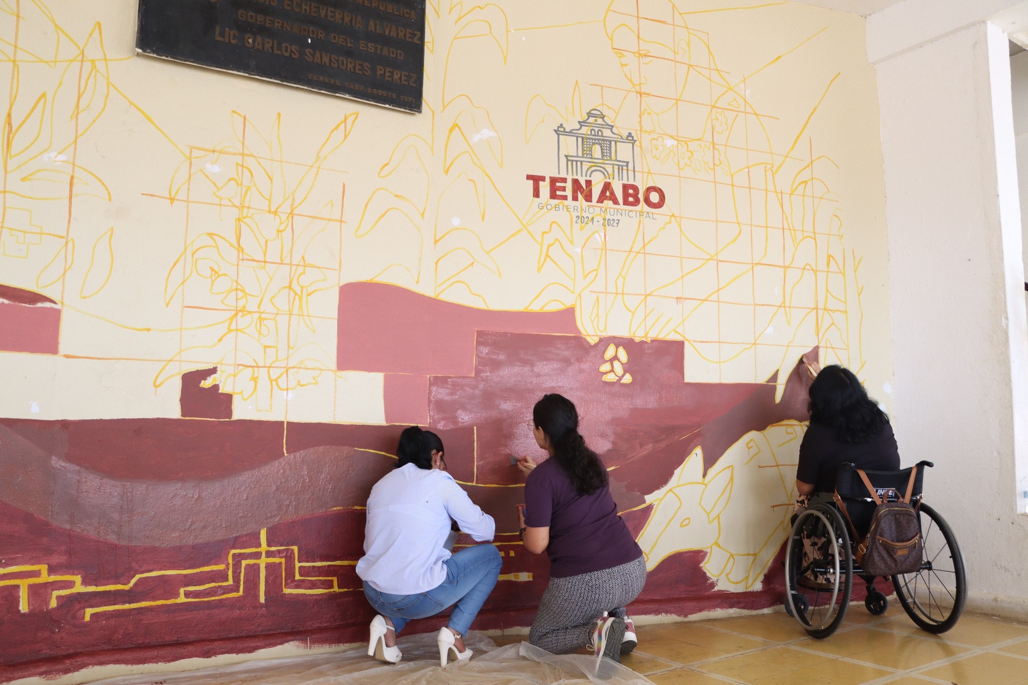 La Secretaría de Inclusión acompañó el avance del mural comunitario en el Palacio Municipal de Tenabo, resultado de la suma de voluntades de mujeres, estudiantes y ciudadanía en general. Este proceso colectivo ha convertido el arte en un espacio de encuentro, reflexión y participación comunitaria. La actividad se realiza en sinergia con el Instituto de Cultura y Artes del Estado de Campeche y el H. Ayuntamiento de Tenabo 2024–2027. Bajo el liderazgo de la Licda. Ana Alicia Mex Soberanis, estas acciones reflejan la visión cultural y comunitaria promovida por la gobernadora Layda Sansores.