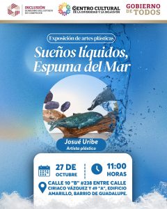 Acompáñanos este 27 de octubre a la inauguración de la exposición “Sueños Líquidos, Espuma del Mar”, una experiencia visual que nos invita a reflexionar sobre la belleza que habita en lo efímero.